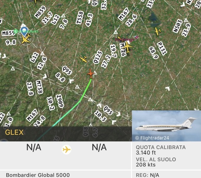 Questo Global Express 5000 da Parigi Le Bourget a Firenze ha effettuato un avvicinamento all’aeroporto fiorentino con missed approach e ha messo prua poi su Bologna.