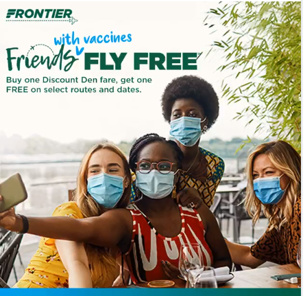 Frontier Airlines sta incoraggiando i viaggiatori a vaccinarsi con un aggiornamento del suo popolare programma Friends Fly Free, ora Friends With Vaccines Fly Free, inoltre, la compagnia aerea sta invitando i consumatori a volare con ulteriori 10.000 Miglia bonus* al momento della prenotazione entro il 31 agosto