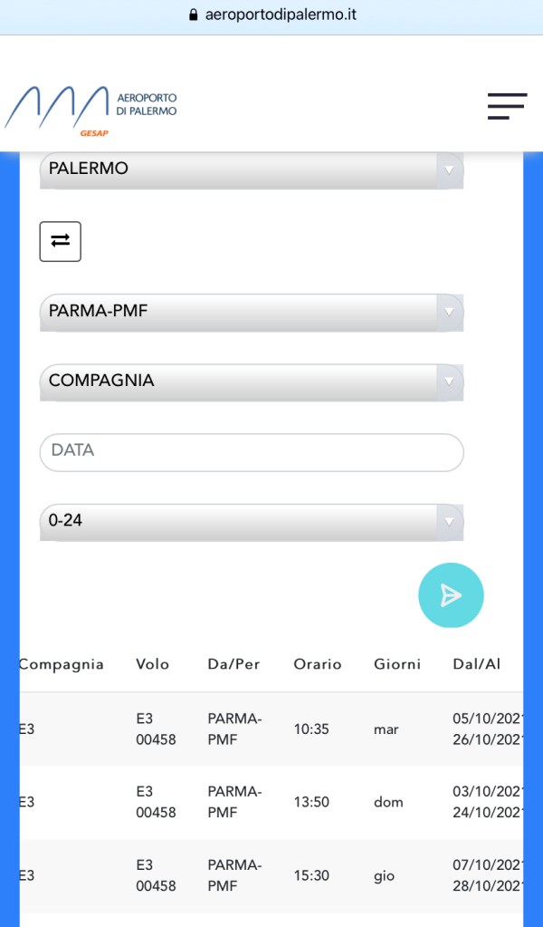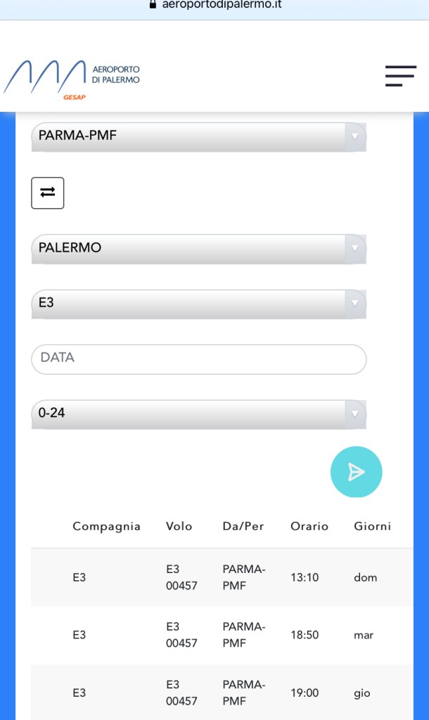 Questi orari sono disponibili sul sito dell’aeroporto di Palermo.