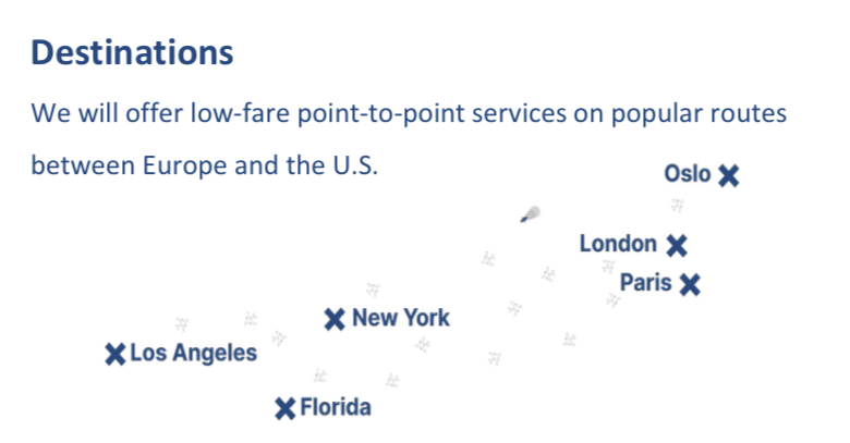 “Crediamo fermamente che sia necessaria una compagnia aerea nuova e innovativa che serva il mercato intercontinentale a basso costo con velivoli moderni, più rispettosi dell’ambiente e a basso consumo di carburante man mano che il mondo si riapre gradualmente. I nostri piani sono sulla buona strada e le operazioni inizieranno quando le restrizioni ai viaggi saranno revocate e la domanda di viaggi transatlantici sarà tornata”, ha affermato il CEO Bjørn Tore Larsen.