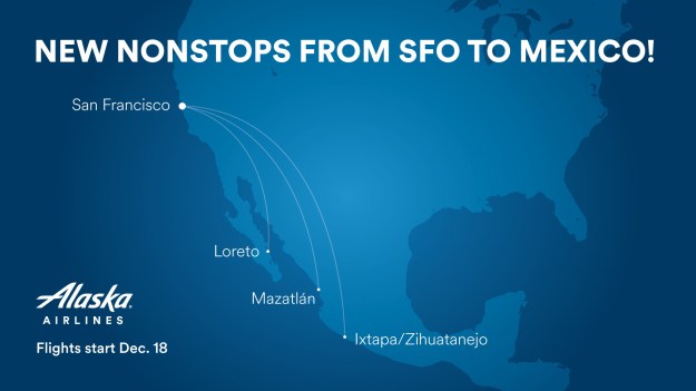 Oltre al nuovo servizio stagionale non-stop da San Francisco a Loreto, Mazatlán e Ixtapa/Zihuatanejo, l’Alaska offre anche voli non-stop da San Francisco a Cancún, Los Cabos e Puerto Vallarta. Da San Jose nella Bay Area, voliamo senza scalo a Guadalajara, Los Cabos e Puerto Vallarta.