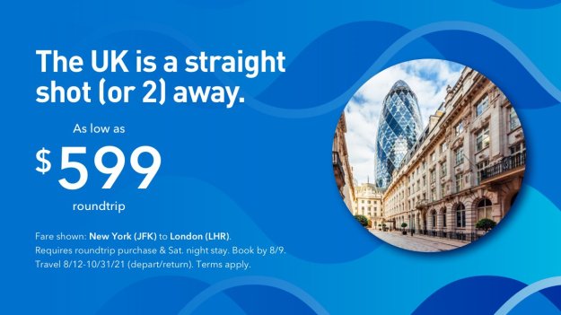 I voli tra New York-JFK e Heathrow operano ogni giorno ad agosto e quattro volte alla settimana a settembre sul nuovo aeromobile Airbus A321 Long Range (LR) di JetBlue con 24 suite Mint ridisegnate, 114 sedili principali e interni eleganti e spaziosi della cabina Airspace.