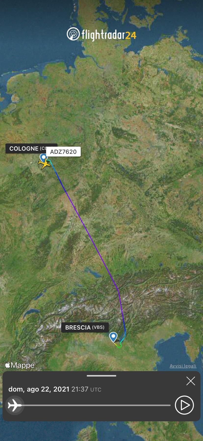 Questa notte il volo ADZ7620 ha operato la Colonia – Brescia.