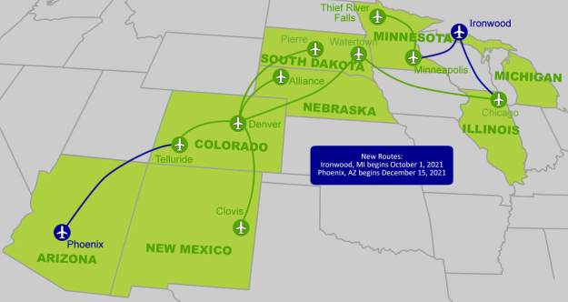 Denver Air Connection-DAC (Denver) sta rilevando il Chicago – Ironwood, MI – Minneapolis/St. Paul EAS rotta il 1 ottobre.