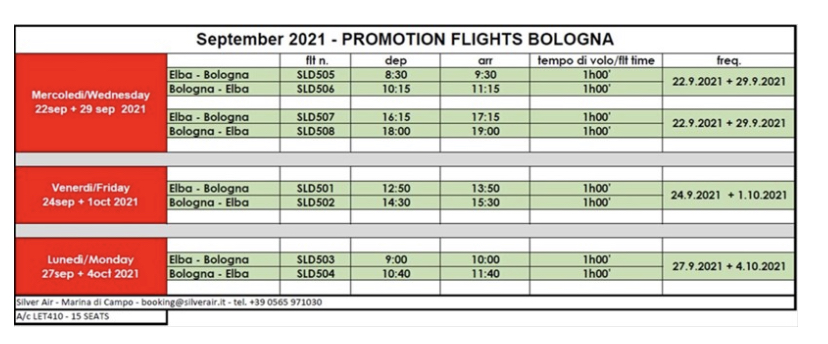 Tra il 22 settembre e il 4 ottobre verrà operata la rotta Bologna – Elba.
