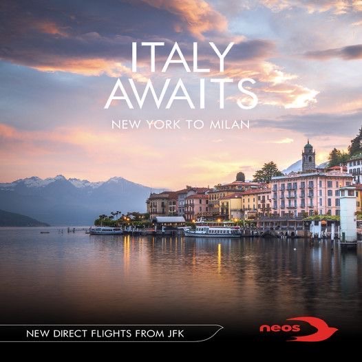 Questo e’ il manifesto della campagna di informazione che Neos e APG USA hanno preparato per la rotta New York JFK – Milano Malpensa.