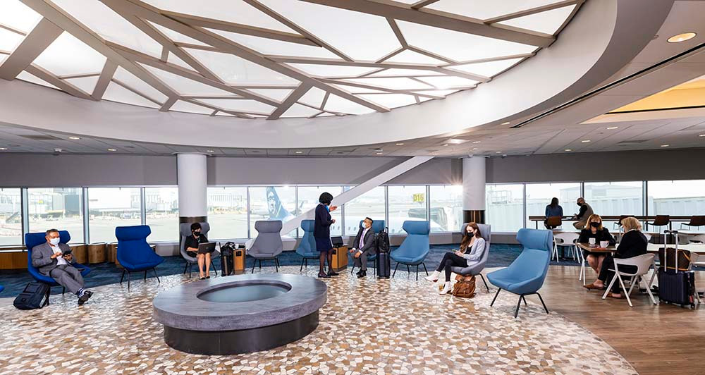 SFO è la seconda lounge più grande della nostra rete e ha alcune caratteristiche divertenti tra cui: