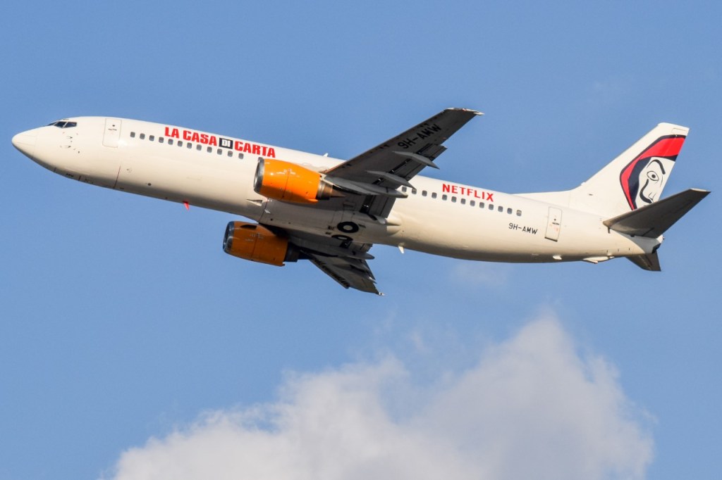 già oggi l’aereo ne risultava parzialmente privo. hanno inizato a rimuovere lo sticker anteriore. poi proseguiranno coin quello posteriore e la coda.