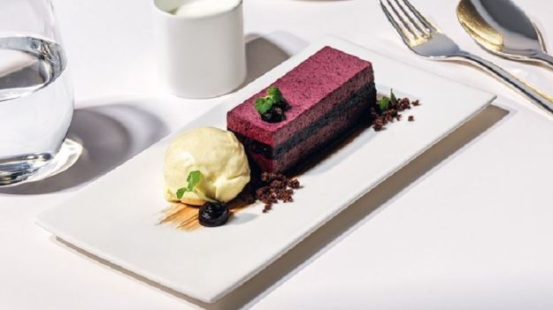 Filetto di vitello con salsa di tartufo nero e fetta di mirtillo con gelato alla birra Appenzeller in Prima Classe