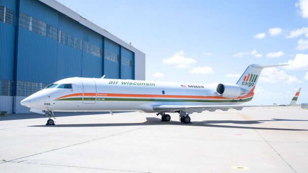 Il cargo CRJ200 SF “Large Cargo Door” di Air Wisconsin è appena uscito dal reparto verniciatura con una livrea storica Air Wisconsin!