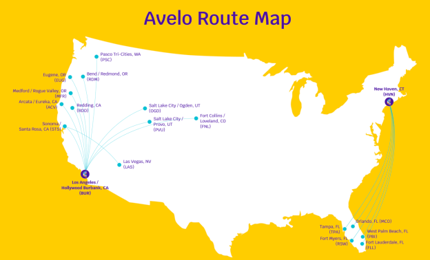 Avelo inizierà il servizio da HVN alla Florida il 3 novembre. Oltre a Fort Myers, Palm Beach e Tampa, Avelo servirà Fort Lauderdale e Orlando.
