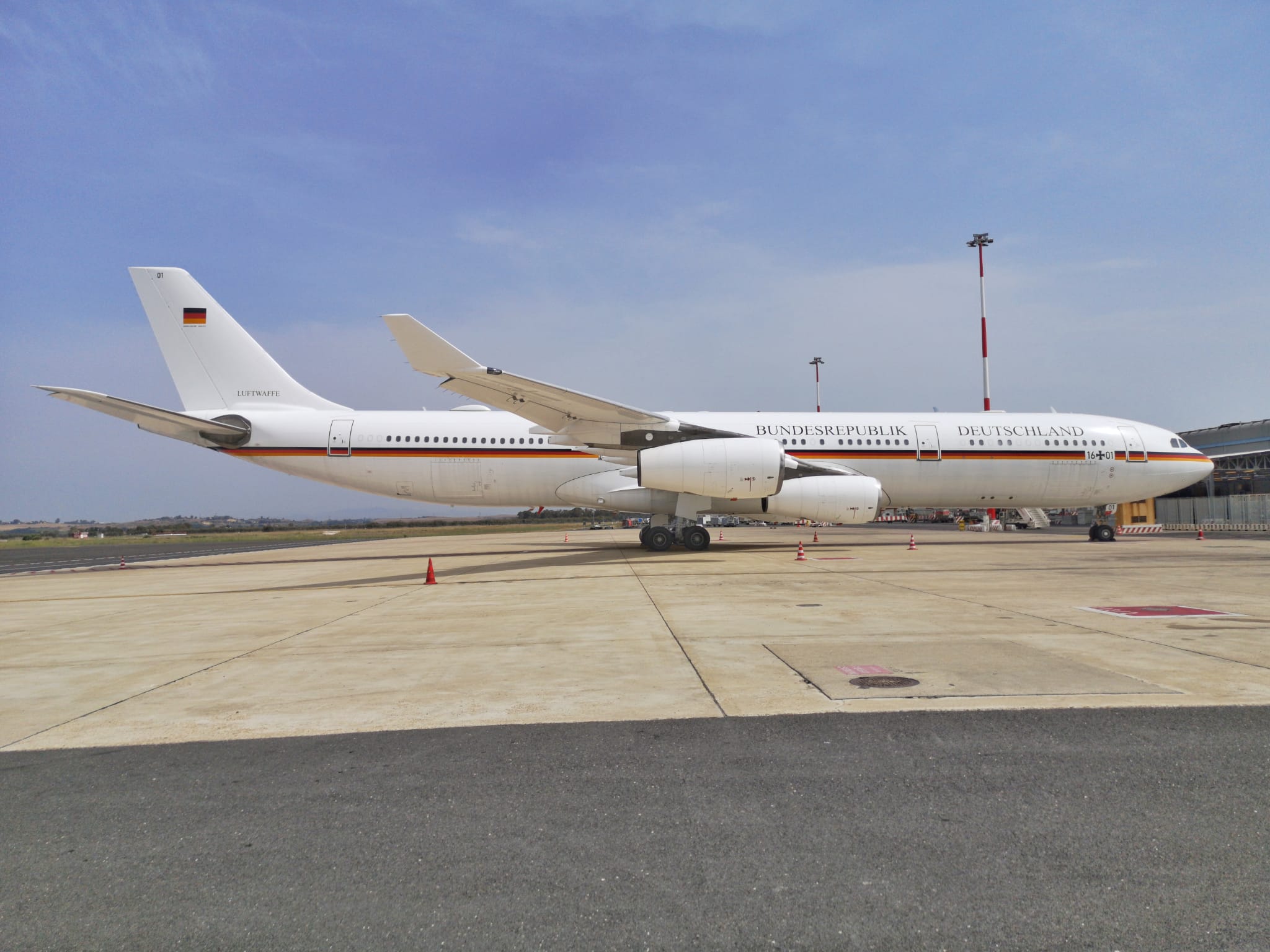 E’ da ieri a Roma Fiumicino, e’ parcheggiato in zona cargo l’A340-300 della BundesRepublik Deutschland, uno degli aerei utilizzati per i servizi di stato tedeschi.