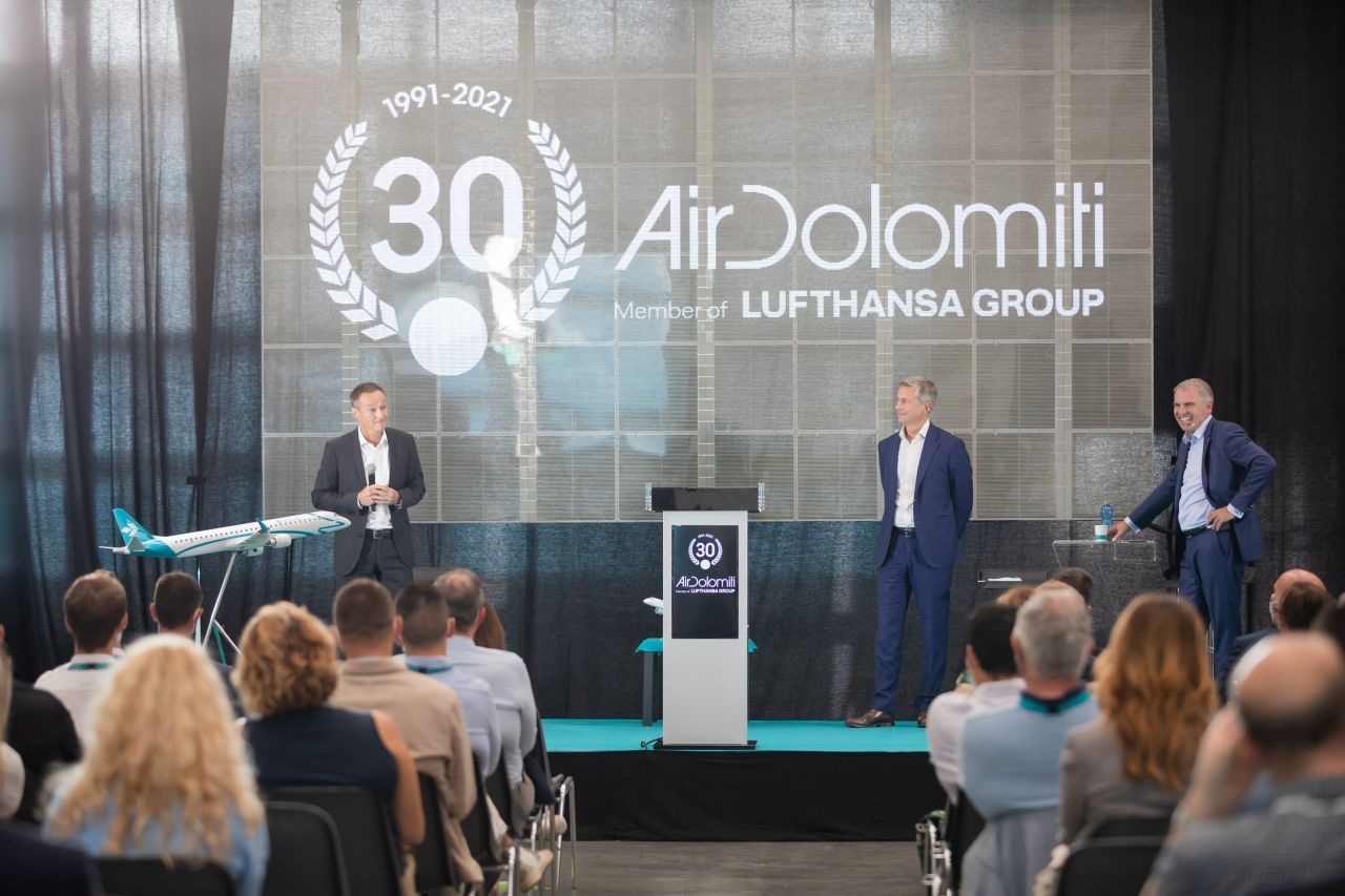 Non solo i 30 anni di Air Dolomiti con una torta a scalini che celebravano gli step temporali del vettore. Ma pure il cambio di consegne effettivo tra il Presidente e CEO uscente Joerg Eberhart e quello subentrante Steffen Harbarth. Tutto quanto alla presenza di Carsten Spohr – CEO di Lufthansa. Su Air Dolomiti ha detto ”stiamo considerando nel board di dare altri aerei alla Air Dolomiti”.