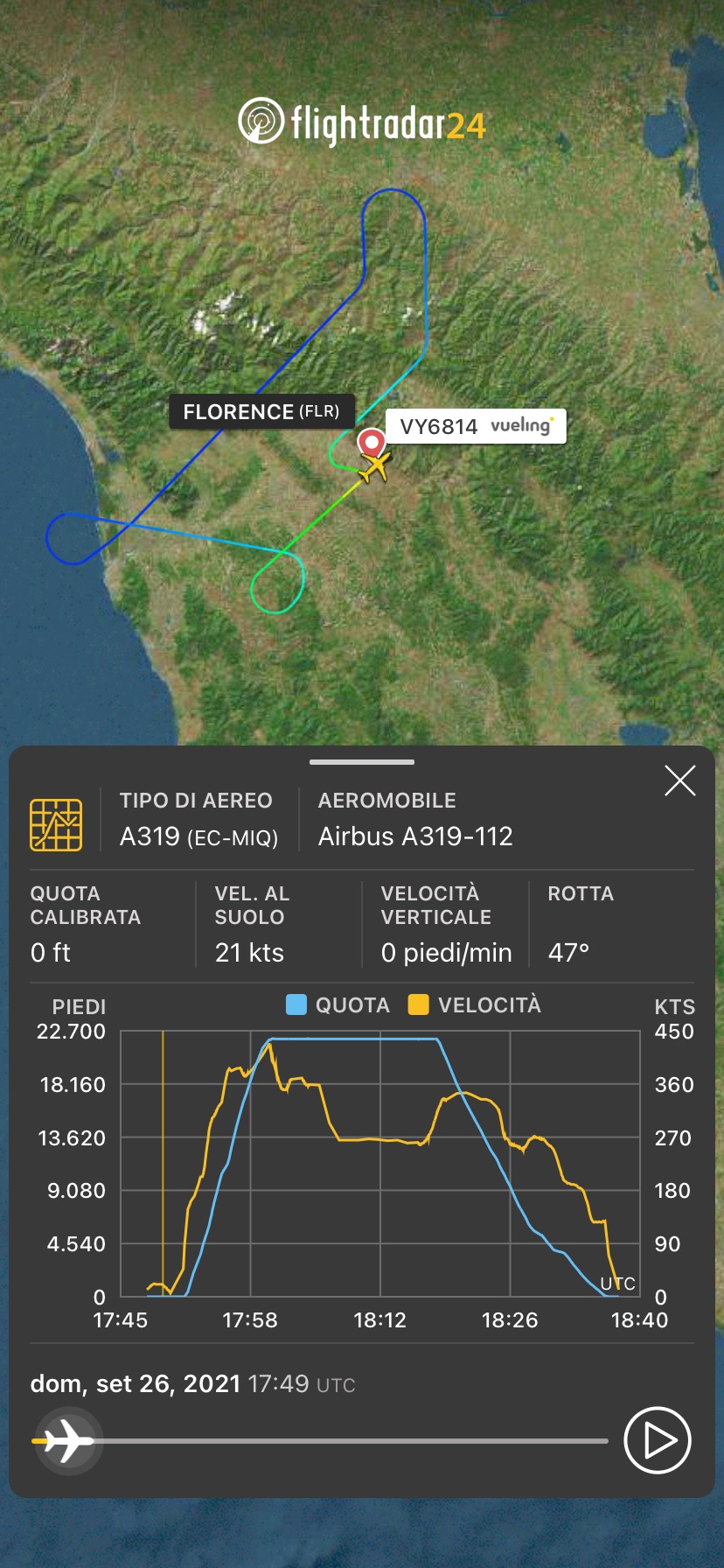 Questo e’ il diagramma del volo Vueling di questa sera da Firenze a Amsterdam.