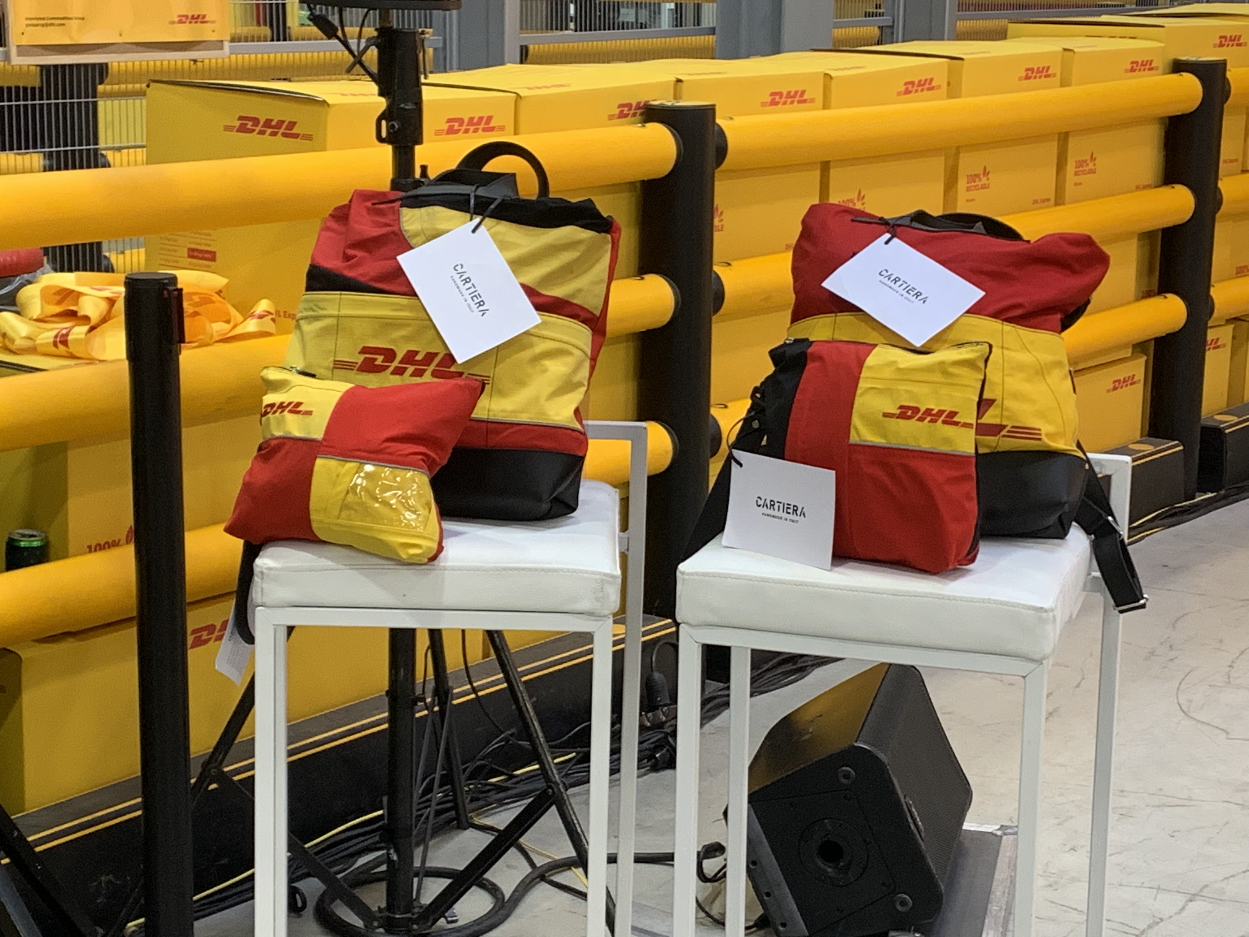il progetto realizzato in accordo con Cartiera, laboratorio di moda etica con sede a Marzabotto (Bologna), secondo i principi dell’economia circolare. Le divise dismesse da DHL Express Italy non saranno smaltite ma saranno recuperate al 100% e prenderanno nuova vita sotto forma di altri oggetti a marchio ‘DHL’ (per es. porta badge, pochette e zaini). Si comincia con oltre 2.000 kg di divise DHL Express Italy già dismesse.