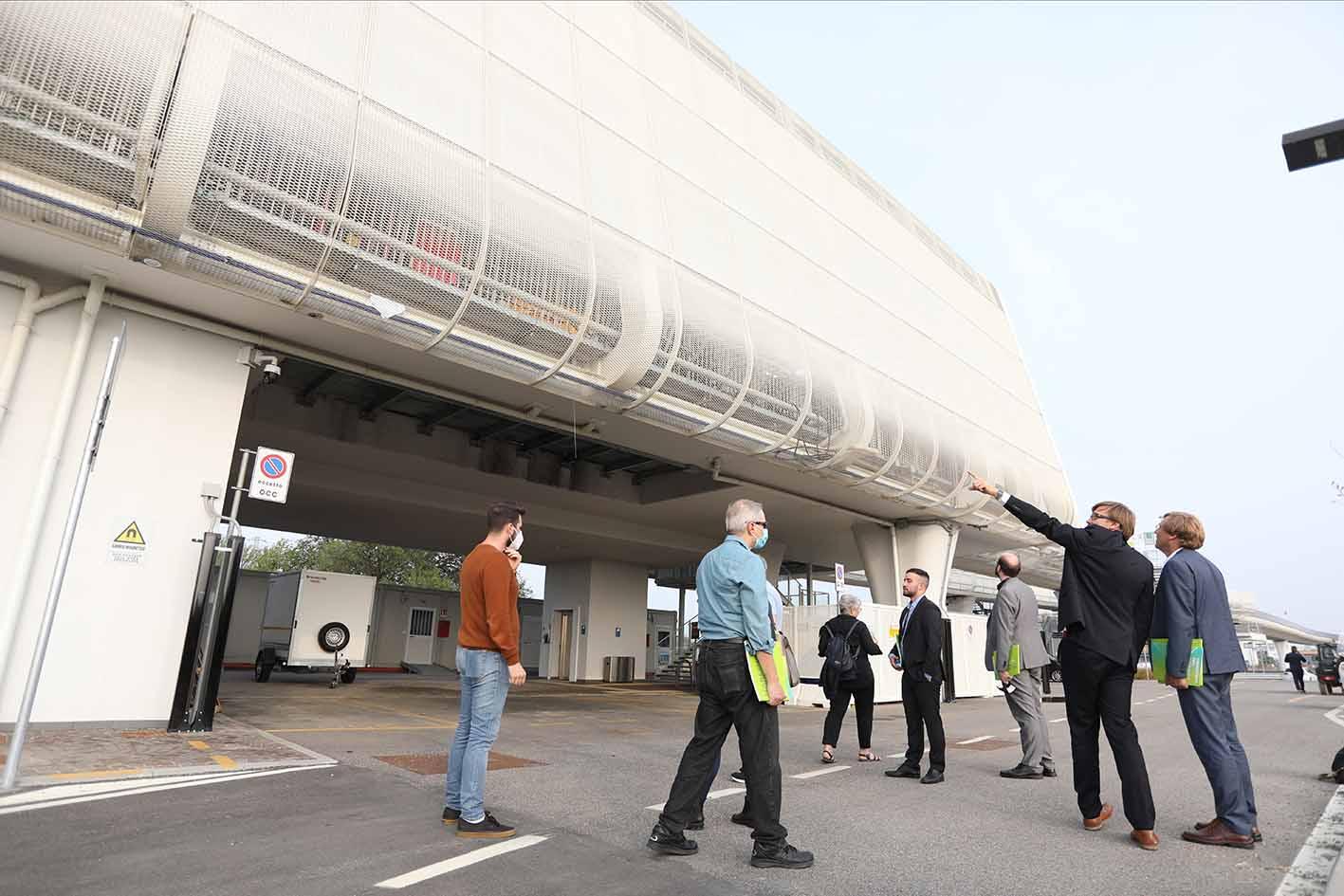 La delegazione, composta da 22 persone da tutto il mondo e guidata dal canadese Marko Kroenke, presidente di Ima, è stata accolta alla stazione centrale di Bologna. Dopo uno spostamento a bordo della navetta veloce, all’aeroporto Marconi si è tenuta la presentazione del progetto da parte di Rita Finzi, presidente di Marconi Express, dall’ingegner Fabio Padovani (Marconi Express) e dall’ingegner Franz Zürcher di Intamin, con i saluti del presidente dell’aeroporto Enrico Postacchini. A seguire, sempre a bordo della navetta, la delegazione si è spostata alla stazione Lazzaretto per visitare la centrale operativa del sistema.