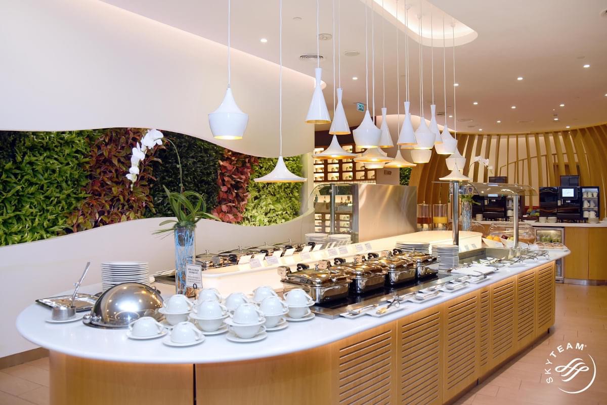 Cucina globale: un’ampia selezione di opzioni di menu caldi e freddi che rappresentano la diversità della rete SkyTeam, oltre a prelibatezze locali e regionali, a rotazione mensile. La selezione degli alimenti viene visualizzata per soddisfare i più elevati standard di igiene