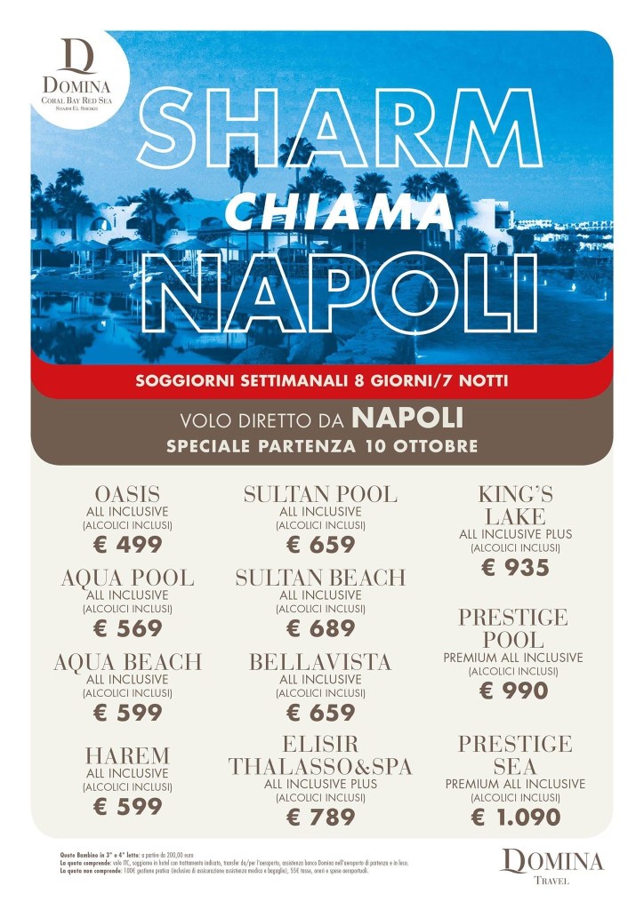 A partire da questo mese di ottobre, grazie alla possibilità concessa dai nuovi corridoi turistici, ci sara’ la ripresa dei voli dedicati dall’Italia verso Sharm el Sheikh per Domina Travel.