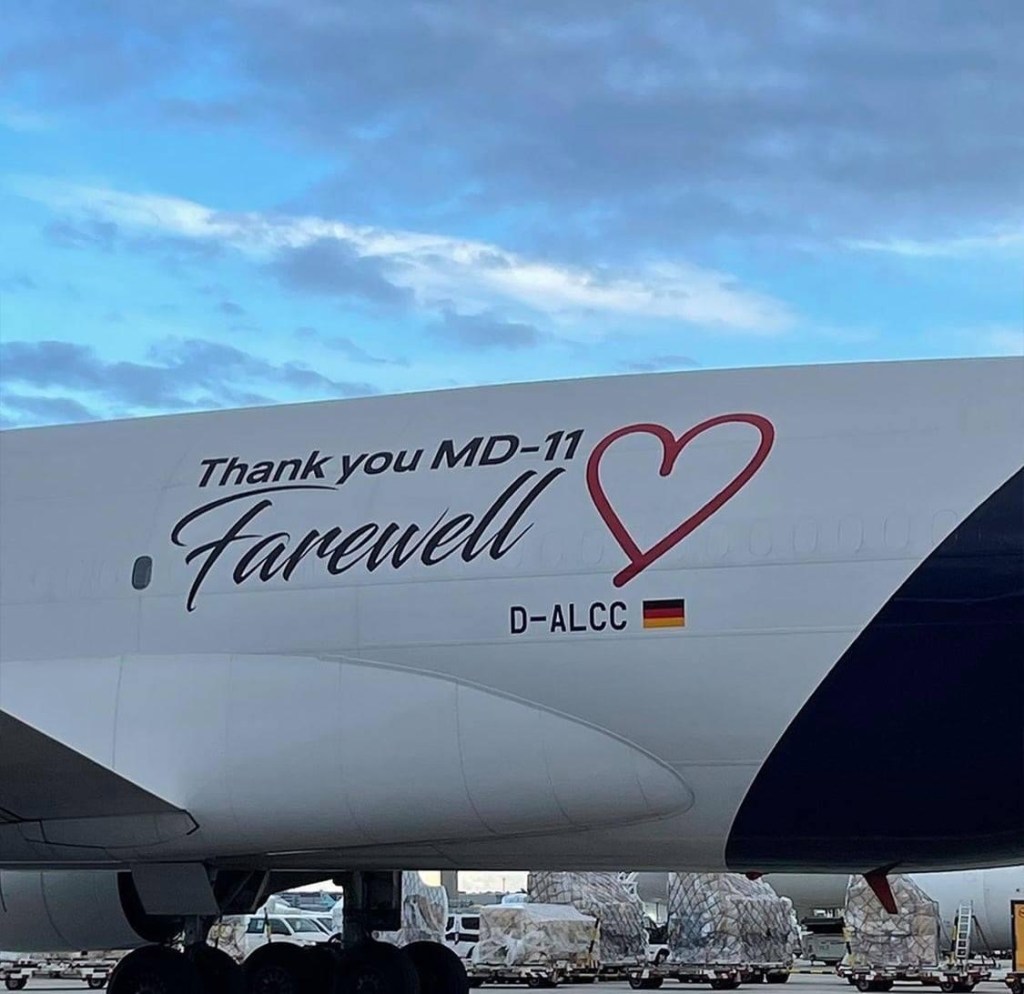 Volo di addio per l’ultima rotazione di andata e ritorno per Lufthansa Cargo con MD-11F D-ALCC con la Farewell livery, ideata da Lufthansa ”Thank you MD-11”