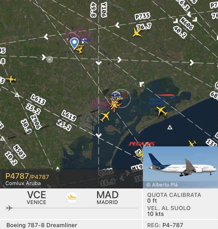 In questi giorni almeno due volte il Boeing 787-8 P4-787 della Comlux e’ atterrato a Venezia dove ha pure sostato.