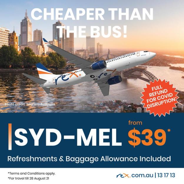 REX Airlines ripristinerà i suoi sei Boeing 737-800 sulle rotte che collegano Sydney, Melbourne e Canberra il 15 novembre.