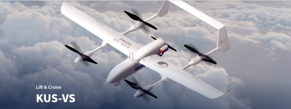 Korean Air sta anche sviluppando un UAV avanzato “lift & cruise”, il KUS-VS. La tecnologia “Lift & Cruise” sfrutta i propulsori indipendenti per la crociera e per il sollevamento. Durante il decollo e l’atterraggio verticali (VTOL), l’UAV utilizza la spinta di sollevamento alimentata da rotori montati verticalmente e, una volta raggiunta l’altitudine di crociera, i rotori montati orizzontalmente forniscono la spinta di propulsione. Questa tecnologia consente una maggiore velocità di crociera e una maggiore autonomia di volo rispetto agli elicotteri. La compagnia aerea prevede di proporre in seguito il KUS-VS ai militari come UAV di nuova generazione a livello di divisione.
