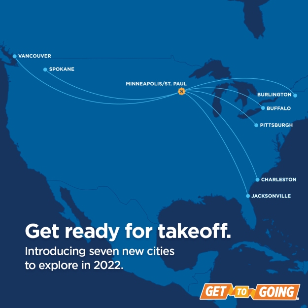 Sun Country Airlines sta aggiungendo le seguenti nuove rotte dalla sua Minneapolis/St. Paul hub: