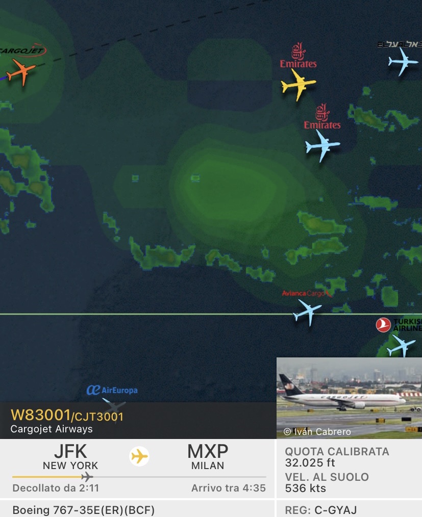 Oggi e per le prossime tre domeniche ci saranno in totale quattro voli operati dal vettore canadese Cargojet specializzato in operazioni all freighter.