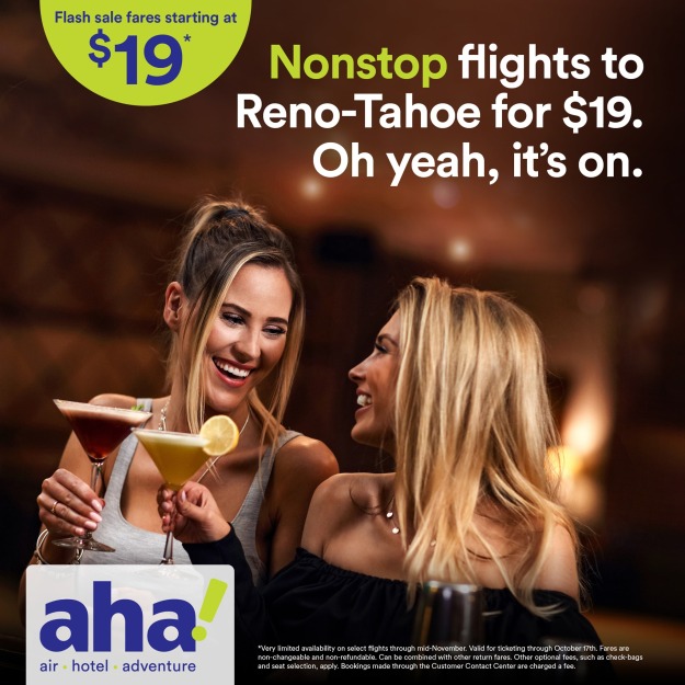 ahah! lancia oggi (25 ottobre) Reno-Tahoe a Bakersfield, in California. Altri voli diretti, da Reno-Tahoe, seguono in rapida successione: