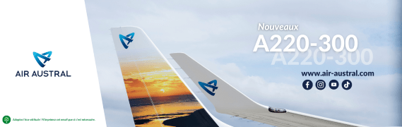 | In conformità alla regolamentazione introdotta dall’aviazione civile francese e, dall’aviazione civile delle destinazioni verso le quali opera, Air Austral è ora in grado di annunciare che riprenderà gradualmente i voli regionali.Il network regionale sarà operato con il nuovo acquisto della compagnia: l’Airbus A220-300. . Questo aereo di ultima generazione, moderno e confortevole è stato aggiunto alla flotta il 12 Agosto 2021 come parte del rinnovamento dell’intera flotta di medio raggio. |