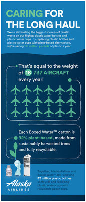 Alaska è diventata la prima compagnia aerea ad offrire agli ospiti acqua distribuita in volo con quelle in cartone i Boxed Water™ all’inizio del 2021, introducendo l’alternativa dell’acqua confezionata rinnovabile in First Class e sui voli operati da Horizon Air in Alaska. La sperimentazione è stata un successo con ospiti e dipendenti, con i passeggeri intervistati che hanno preferito l’acqua in scatola rispetto all’acqua in bottiglia di plastica con una rapporto di due a uno.