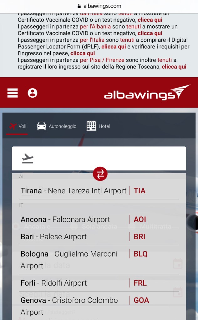 Non ci sono stati ancora gli annunci ufficiali, da oggi nella tendina del sistema di vendita web booking di Albawings, e’ stato aggiunto l’aeroporto di Forli.