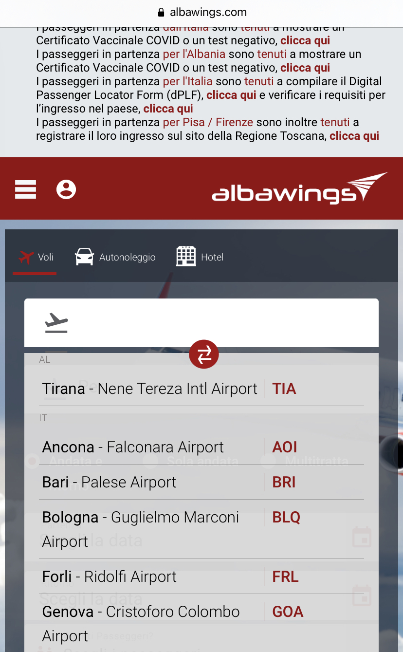 Non ci sono stati ancora gli annunci ufficiali, da oggi nella tendina del sistema di vendita web booking di Albawings, e’ stato aggiunto l’aeroporto di Forli.