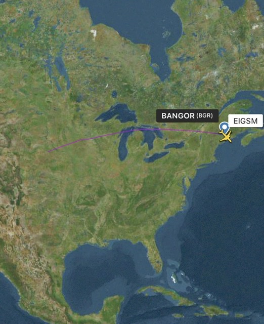 Il B737/86Q EI-GIM di Blue Panorama e’ partito il 2 novembre da Katowice e con gli scali a Keflavik, St.Johns e Bangor e’ gia’ negli USA. Al momento sta volando tra Bangor e un aeroporto non noto verso l’ovest degli USA. L’aereo sta utilizzando la registrazione come identificativo. Seguendo l’itinerario, ora vola come EI-GSM.