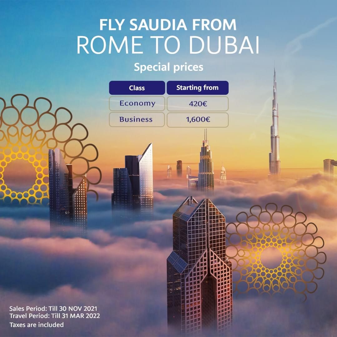 Anche Saudia scende in campo con tariffe speciali da Roma per Dubai.