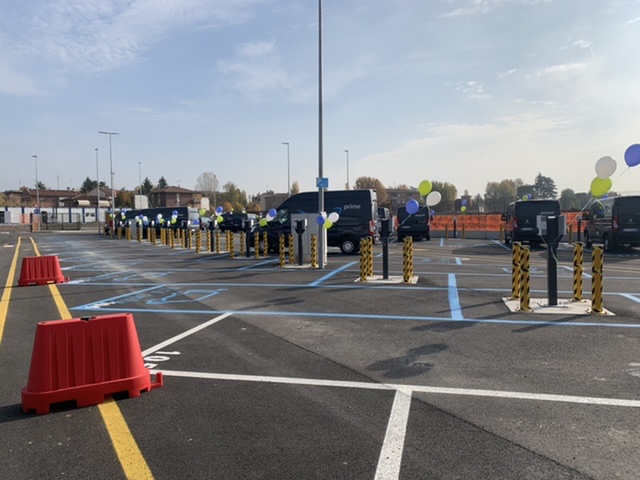La maggior parte dei mezzi sono elettrici e 48 colonnine sono a disposizione per la ricarica degli stessi. In totale sono piu di 70 i mezzi impiegati per le consegne.