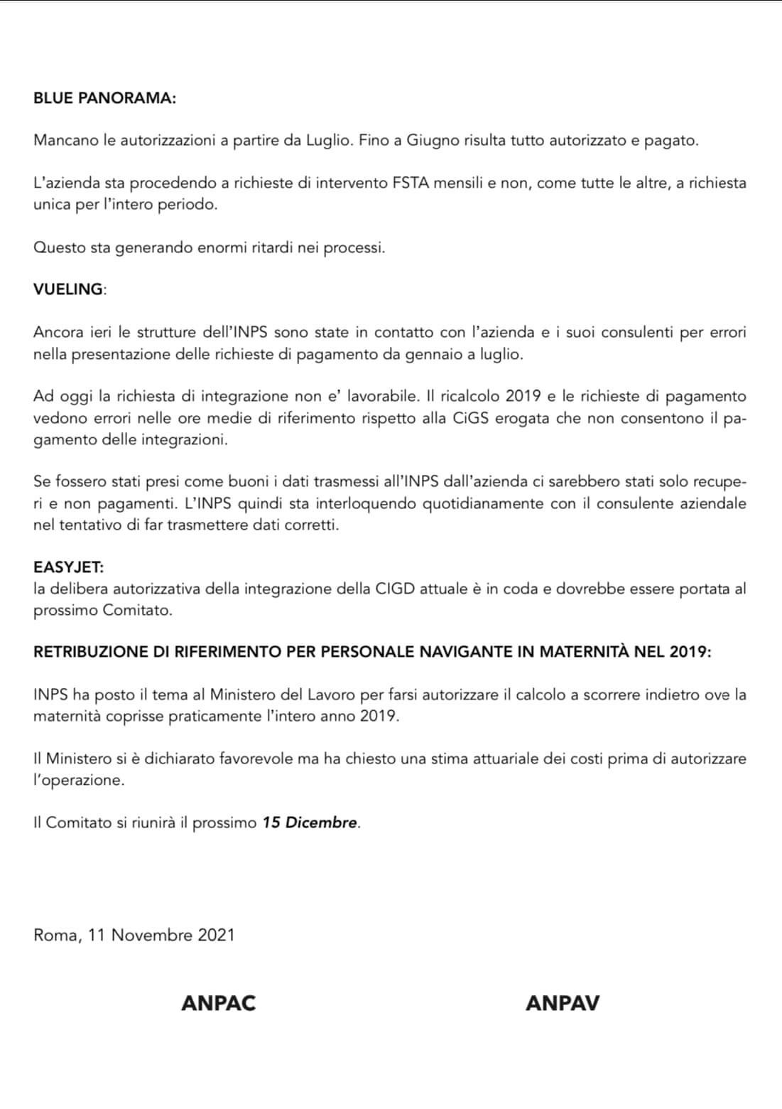 Nel foglio c’e’ un quadro esaustivo sullo stato dei vettori che hanno chiesto ammortizzatori sociali, a chi e’ stato concesso o rifiutato.