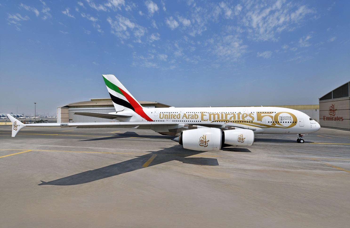 Attrazione popolare per gli appassionati di aviazione e i visitatori professionali, l’Airbus A380 di ultima generazione di Emirates sarà decorato con l’esclusiva livrea “Emirati Arabi Uniti 50”, per celebrare il giubileo d’oro degli Emirati Arabi Uniti.