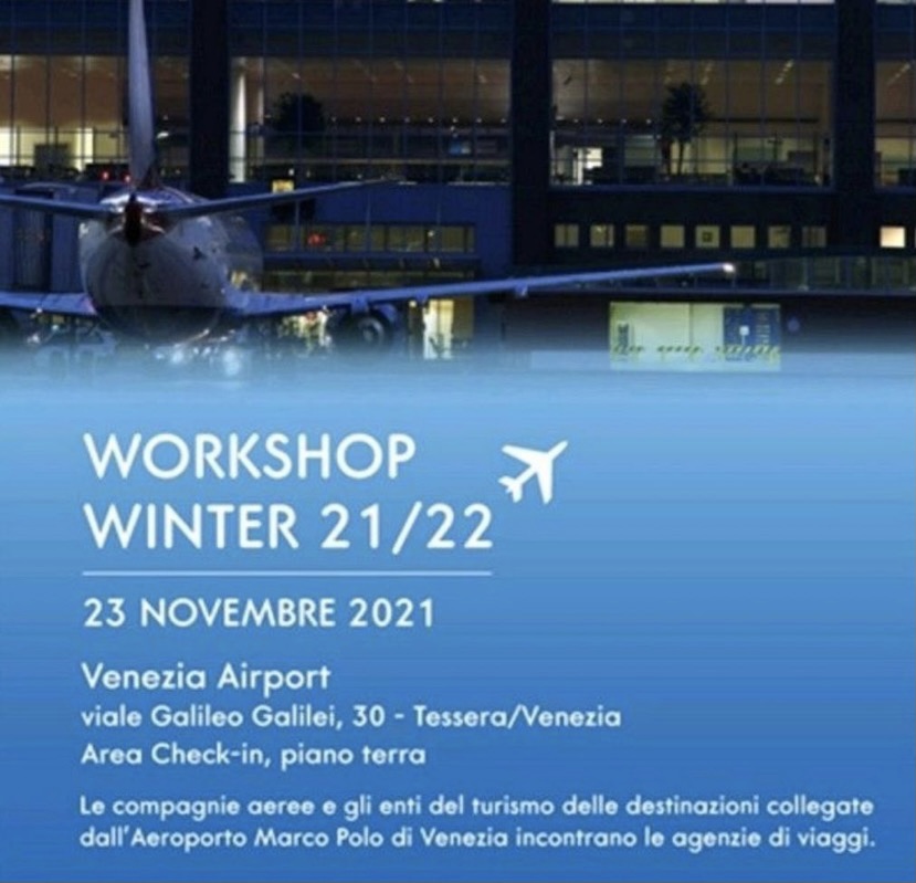 Il 23 novembre e cioe’ martedi prossimo nel terminal del Marco Polo si terra’ questo workshop per la winter 2021/22. E’ prevista la presenza della forza commerciale dei vettori operanti su Venezia, nonche alcuni uffici di promozione turistica, i quali saranno a disposizione per incontri one-to-one con il trade.