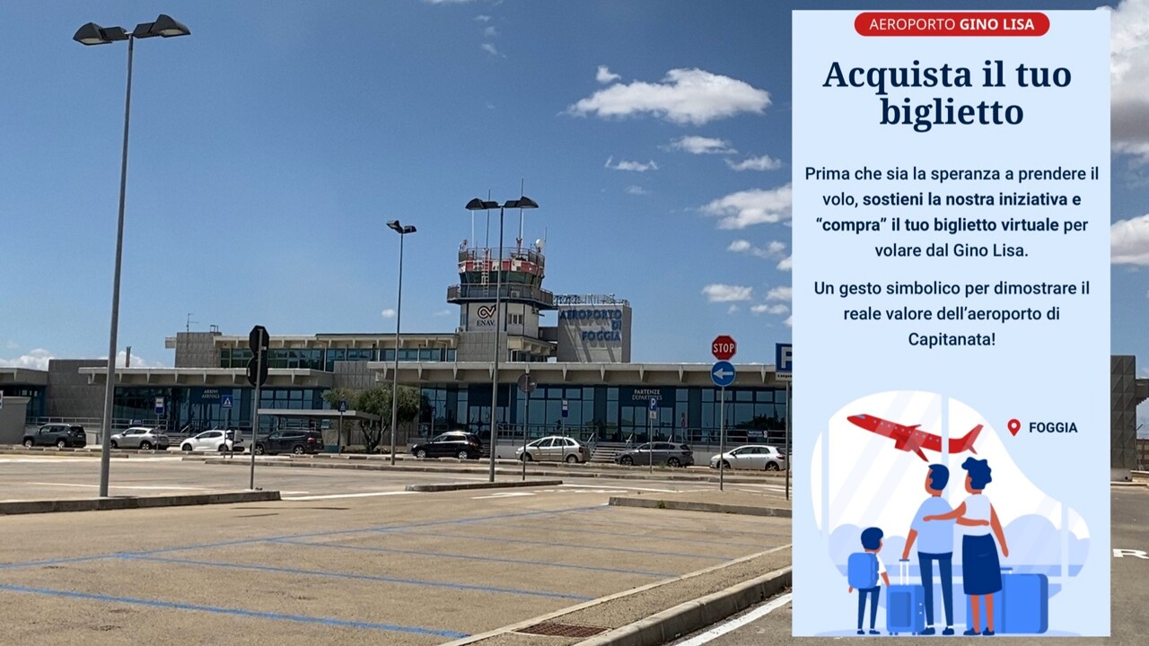 E così rivolge una semplice domanda ai suoi concittadini e a tutti coloro che credono nello sviluppo dell’aeroporto di Foggia: “Se poteste partire in questo momento prenotando un volo dal Gino Lisa, dove andreste?”. Il sito, semplice e intuitivo, è la sua chiamata all’azione, “prima che sia la speranza a prendere il volo”. Si può simulare un volo dal Gino Lisa scegliendo la destinazione tra Amsterdam, Barcellona, Berlino, Budapest, Copenaghen, Firenze, Francoforte, Lisbona, Londra, Milano, Napoli, Palermo, Parigi, Roma, Torino, Treviso e Valencia.