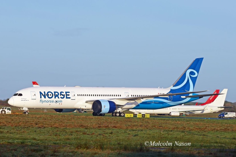 A Shannon, Malcolm Nason ha fotografato il sesto Boeing 787-9 Norse Atlantic, poco dopo l’uscita dall’hangar di verniciatura della IAC-International Aerospace Coatings.