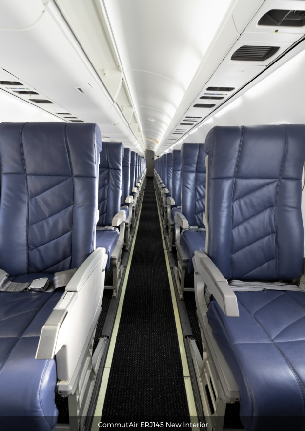 CommutAir è lieta di annunciare il lancio di un ampio sforzo per aggiornare e sostituire gli interni dell’intera flotta di aeromobili Embraer 145XR da 50 posti con il supporto di United Airlines.