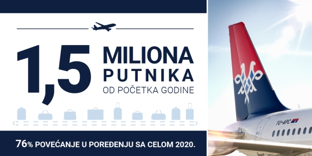 Lo scorso fine settimana, la compagnia di bandiera serba Air Serbia ha superato 1.500.000 passeggeri trasportati nel 2021. Questo risultato rappresenta un aumento di non meno del 76% rispetto al numero di passeggeri trasportati durante l’intero 2020, che è stato segnato dalla più grande crisi della storia del trasporto aereo mondiale. Dall’inizio dell’anno, Air Serbia ha avuto un fattore di carico del 66 percento.