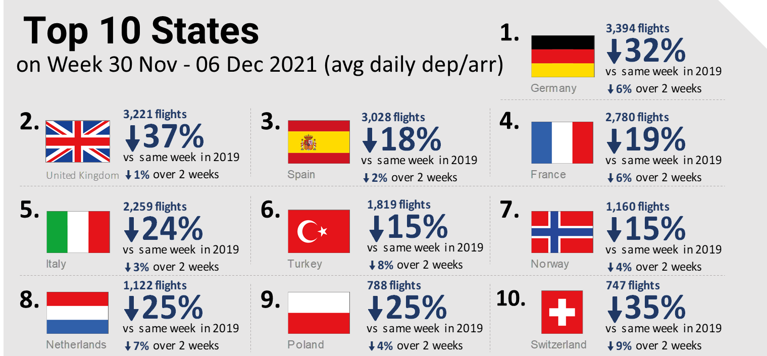 10 stati europei messi a confronto, non tra loro, ma temporalmente su una media settimanale tra lo stesso periodo 2019 e 2021. Se prendessero in valutazione il 2020 sarebbero cifre in crescita a tre cifre e non con un 1 davanti, ma forse 3,4,5 centinaia percento. C’e’ anche una comparazione nel lasso di tempo di 2 settimane. Anche qui seppur moderatamente di qualche punto percentuale sono a segno meno