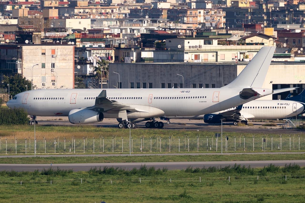 L’aeromobile e’ parcheggiato a Napoli presso Atitech nell’area a nord dello scalo partenopeo. Le marche del velivolo sono OE-IEZ.