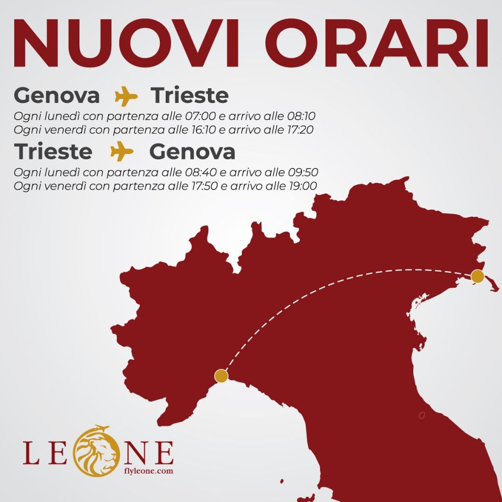 “Inoltre l’Aeroporto di Genova ha dimostrato un interesse nei confronti della nostra startup fin dai primi voli operati da ottobre sulla tratta Genova-Trieste-Genova, che continueremo ad operare con un orario più attento alle esigenze di viaggio dei nostri passeggeri a partire dal 3 gennaio. Presto annunceremo l’apertura di una nuova rotta e l’incremento delle frequenze che inizieranno già da metà febbraio” ha concluso Davide Strinna.