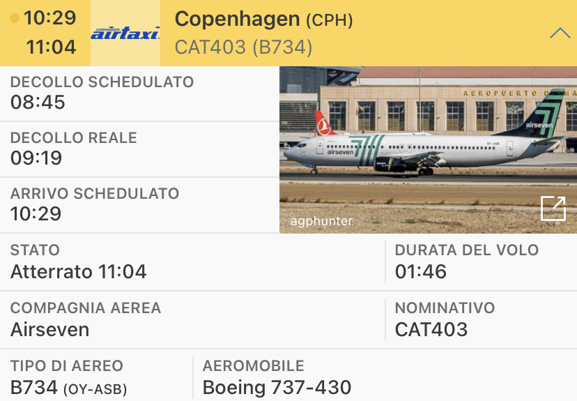La compagnia aerea charter danese operera’ voli settimanali da e per Copenaghen. Airseven e’ un brand, il vettore che lo opera e’ Copenhagen Airtaxi.