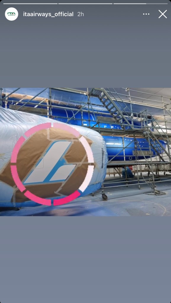 Continuano ”le pillole” sullo stato di avanzamento della verniciatura del primo aereo nella nuova livrea di ITA Airways.