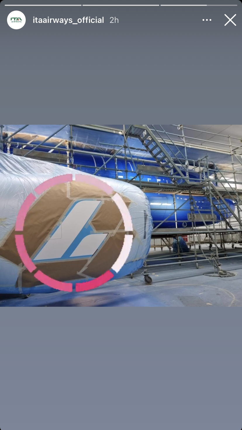 Continuano ”le pillole” sullo stato di avanzamento della verniciatura del primo aereo nella nuova livrea di ITA Airways.