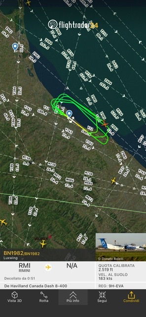 Quindi e’ partito per Rimini, con un mancato avvicinamento e poi al successivo e’ atterrato.